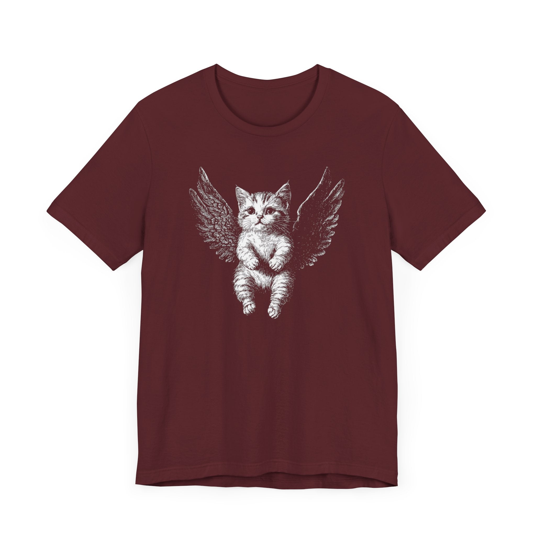 Embrace the cuteness overload with this “Angel Kitten with Wings” graphic tee! 😻✨ Perfect for all cat lovers, this design features an adorable kitten with angelic wings. Whether you’re out running errands or relaxing at home, this tee is the ultimate blend of cute and cozy. A must-have for every feline fan! 🐾💫 Why You’ll Love It: 👕 Ultimate Comfort: Made with 100% Airlume combed and ring-spun cotton, this tee offers a lightweight (4.2 oz/yd² or 142 g/m²) and breathable fabric that’s perfect for both active and leisure wear. 👔 Versatile Style: The retail fit and classic crew neckline make this shirt perfect for casual outings and semi-formal settings alike. Accessorize easily to create your unique look! 👍 Durable Quality: Ribbed knit collars and tapered shoulders ensure a better fit over time, while dual side seams hold the garment’s shape longer, wash after wash. 🌱 Ethically Made: Bella+Canvas products are manufactured in the USA and internationally in a humane, no-sweat-shop, sustainable manner. Proudly part of the Fair Labor Association and Platinum WRAP certified. 🔖 No Irritation: Featuring a tear-away label for added comfort, say goodbye to annoying tags! Fabric Details: 🧵 Solid Colors: 100% Airlume combed and ring-spun cotton 🧵 Ash and Heather Prism: 99% Airlume combed and ring-spun cotton, 1% polyester 🧵 Heather and Solid Blends: 52% cotton, 48% polyester 🧵 Athletic Heather and Black Heather: 90% cotton, 10% polyester Perfect For: 🎁 Gift Giving: An excellent gift for birthdays, holidays, or any special occasion for cat and fashion lovers. 🌳 Everyday Wear: Whether you’re running errands, meeting friends, or just relaxing at home, this shirt is your go-to choice. Embrace your love for bold and unique designs with our Angry Cat Vintage Style T-Shirt. Add it to your collection today! 🛒