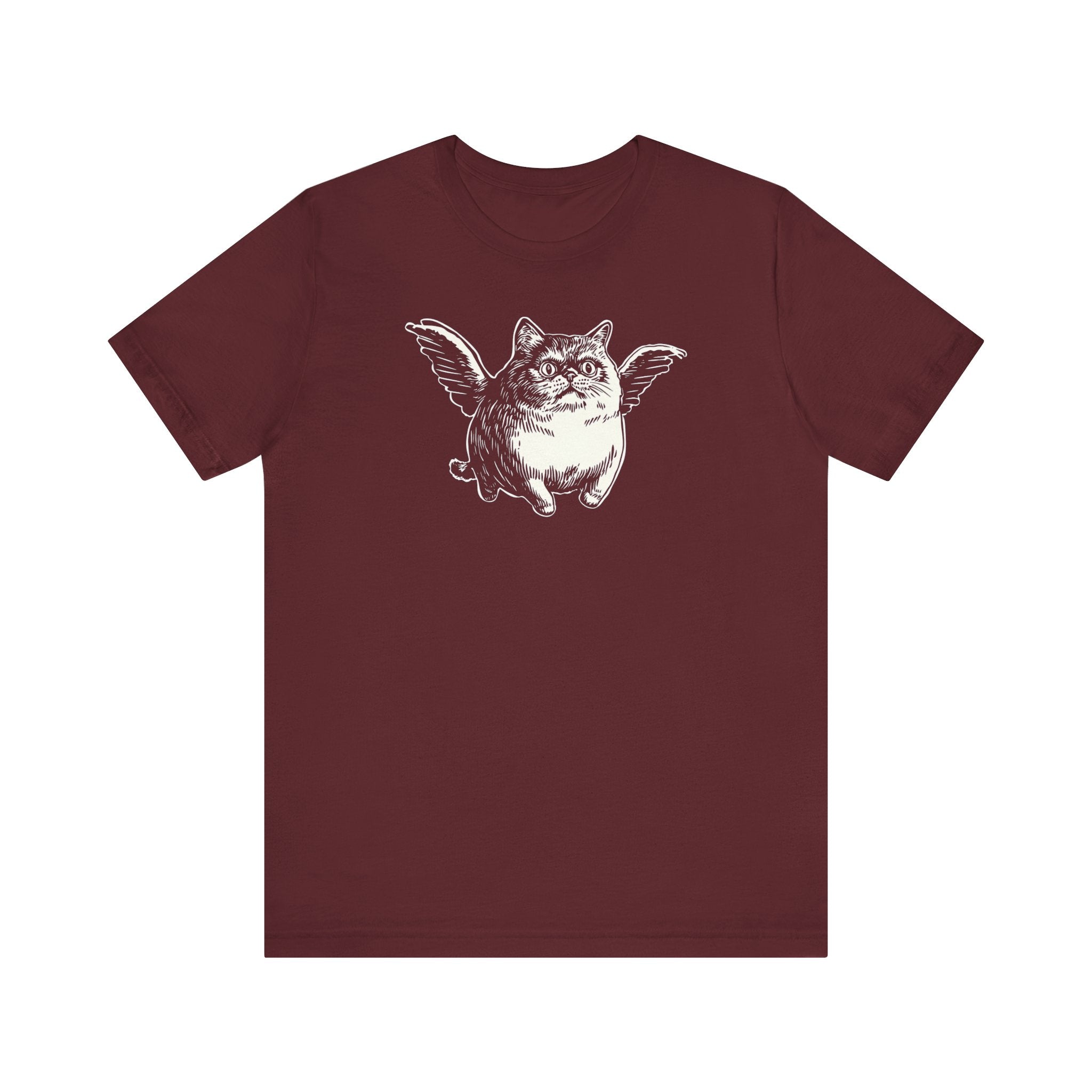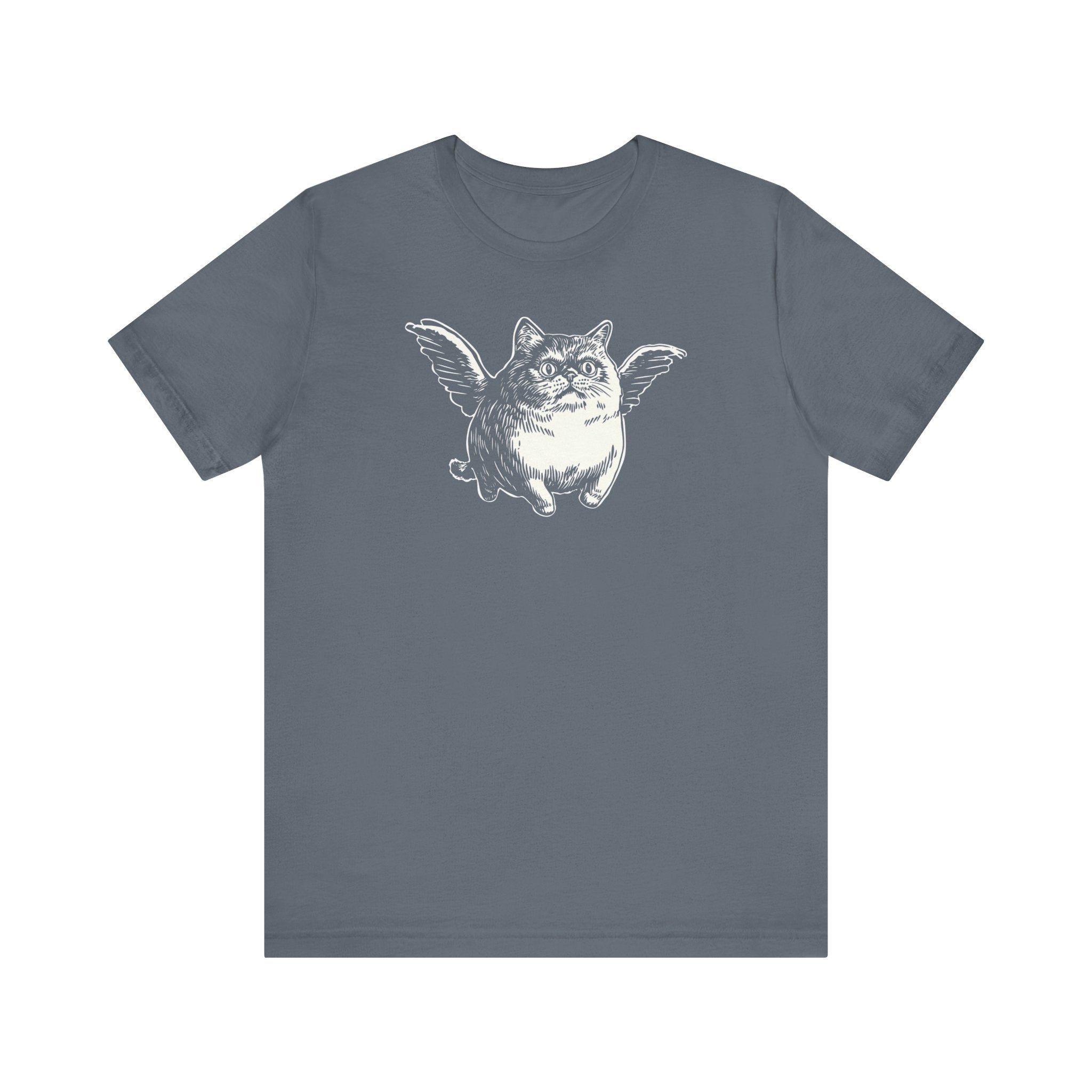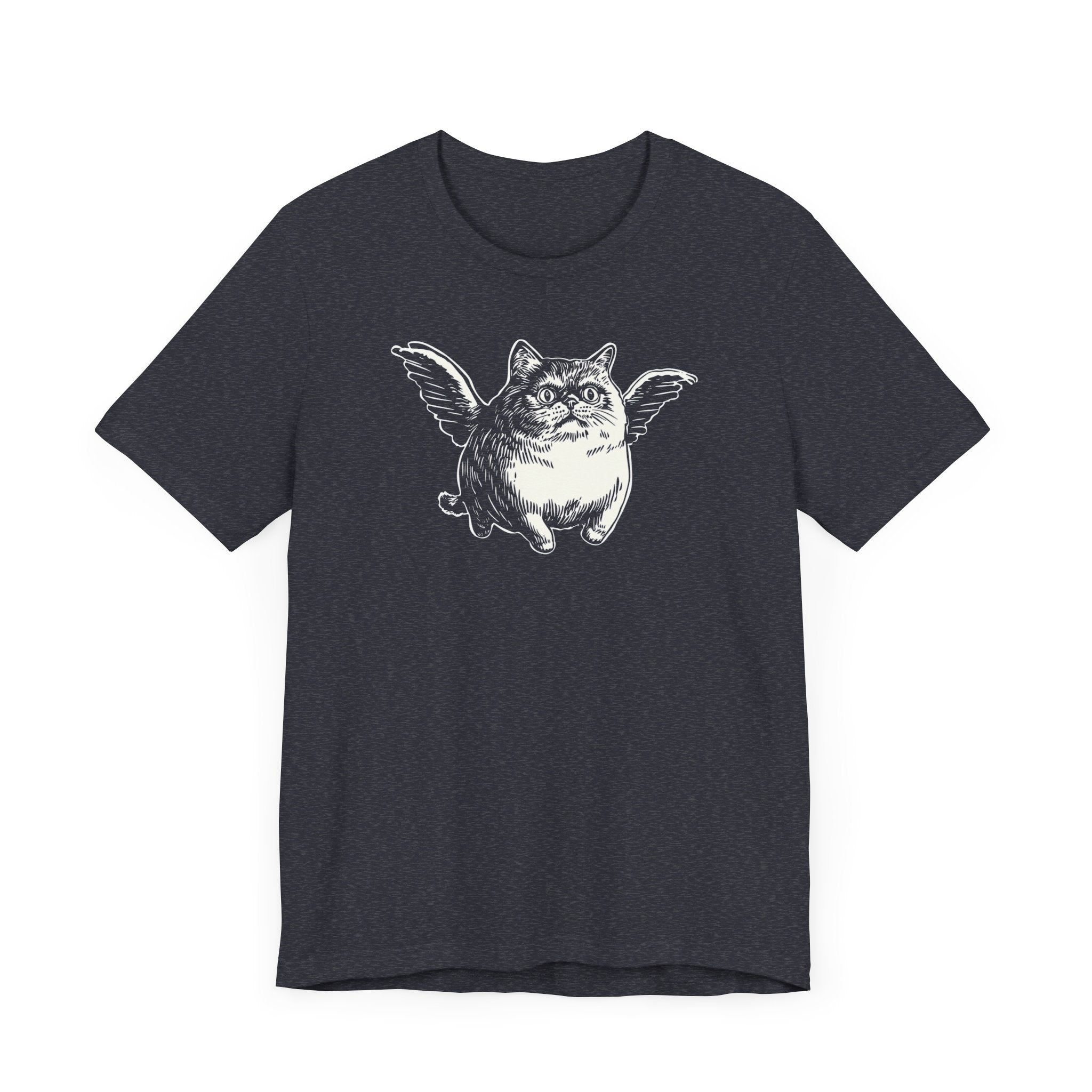 Embrace your whimsical side with this unique Flying Cat T-Shirt. Crafted from soft, breathable fabric, this black tee features a playful illustration of a chubby cat with wings, adding a touch of fun to your wardrobe. The classic fit and crew neckline ensure comfort, making it perfect for casual outings or lounging at home. Why You’ll Love It: 👕 Ultimate Comfort: Made with 100% Airlume combed and ring-spun cotton, this tee offers a lightweight (4.2 oz/yd² or 142 g/m²) and breathable fabric that’s perfect for both active and leisure wear. 👔 Versatile Style: The retail fit and classic crew neckline make this shirt perfect for casual outings and semi-formal settings alike. Accessorize easily to create your unique look! 👍 Durable Quality: Ribbed knit collars and tapered shoulders ensure a better fit over time, while dual side seams hold the garment’s shape longer, wash after wash. 🌱 Ethically Made: Bella+Canvas products are manufactured in the USA and internationally in a humane, no-sweat-shop, sustainable manner. Proudly part of the Fair Labor Association and Platinum WRAP certified. 🔖 No Irritation: Featuring a tear-away label for added comfort, say goodbye to annoying tags! Fabric Details: 🧵 Solid Colors: 100% Airlume combed and ring-spun cotton 🧵 Ash and Heather Prism: 99% Airlume combed and ring-spun cotton, 1% polyester 🧵 Heather and Solid Blends: 52% cotton, 48% polyester 🧵 Athletic Heather and Black Heather: 90% cotton, 10% polyester Perfect For: 🎁 Gift Giving: An excellent gift for birthdays, holidays, or any special occasion for cat and fashion lovers. 🌳 Everyday Wear: Whether you’re running errands, meeting friends, or just relaxing at home, this shirt is your go-to choice.