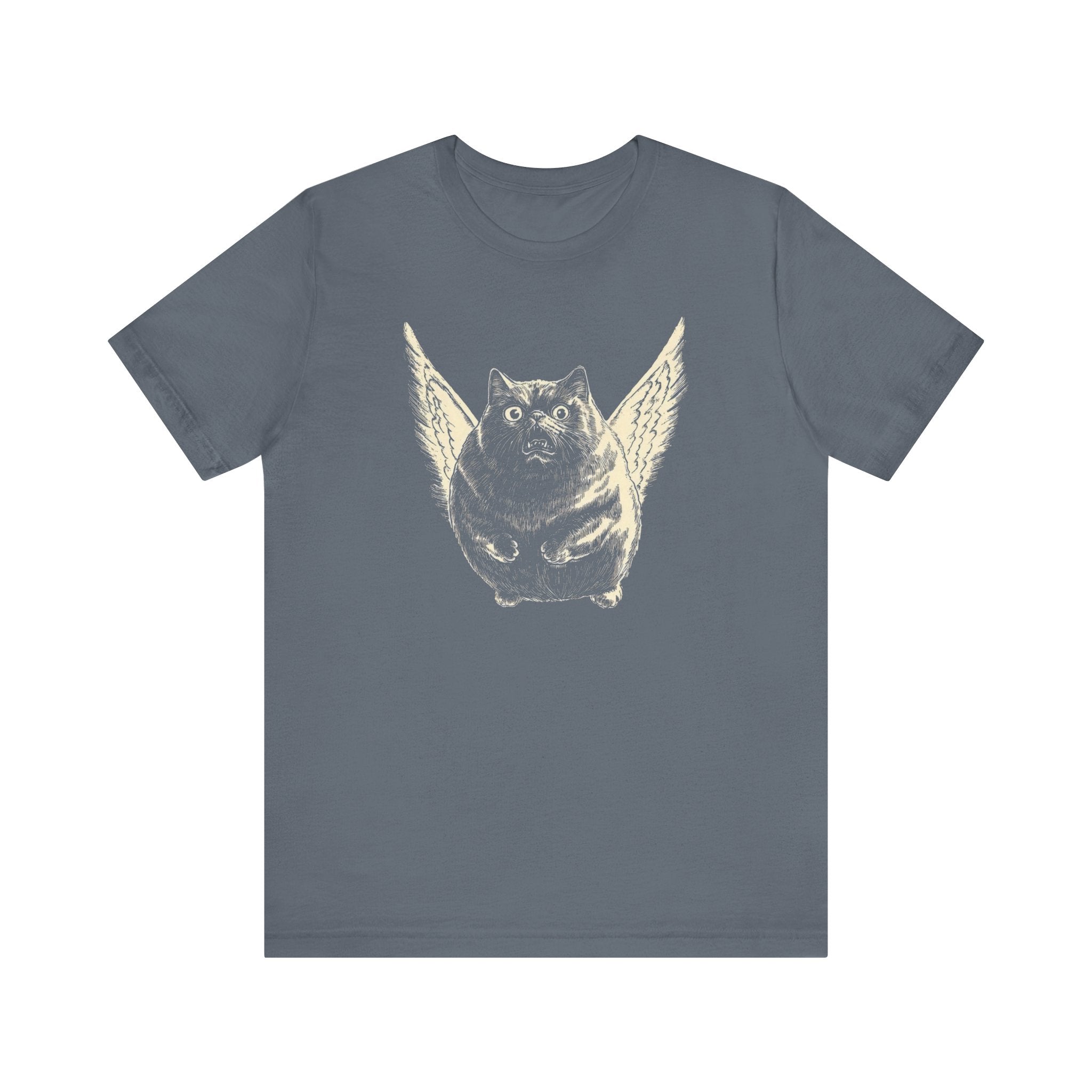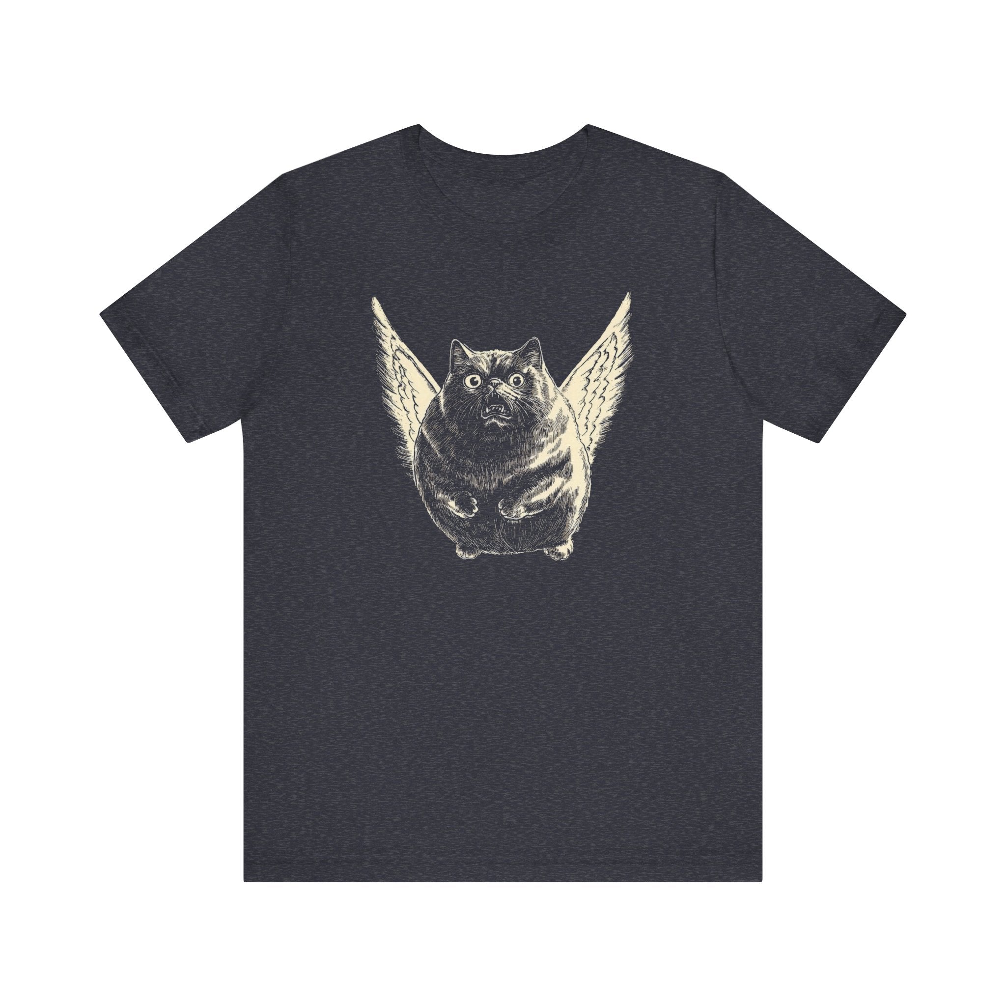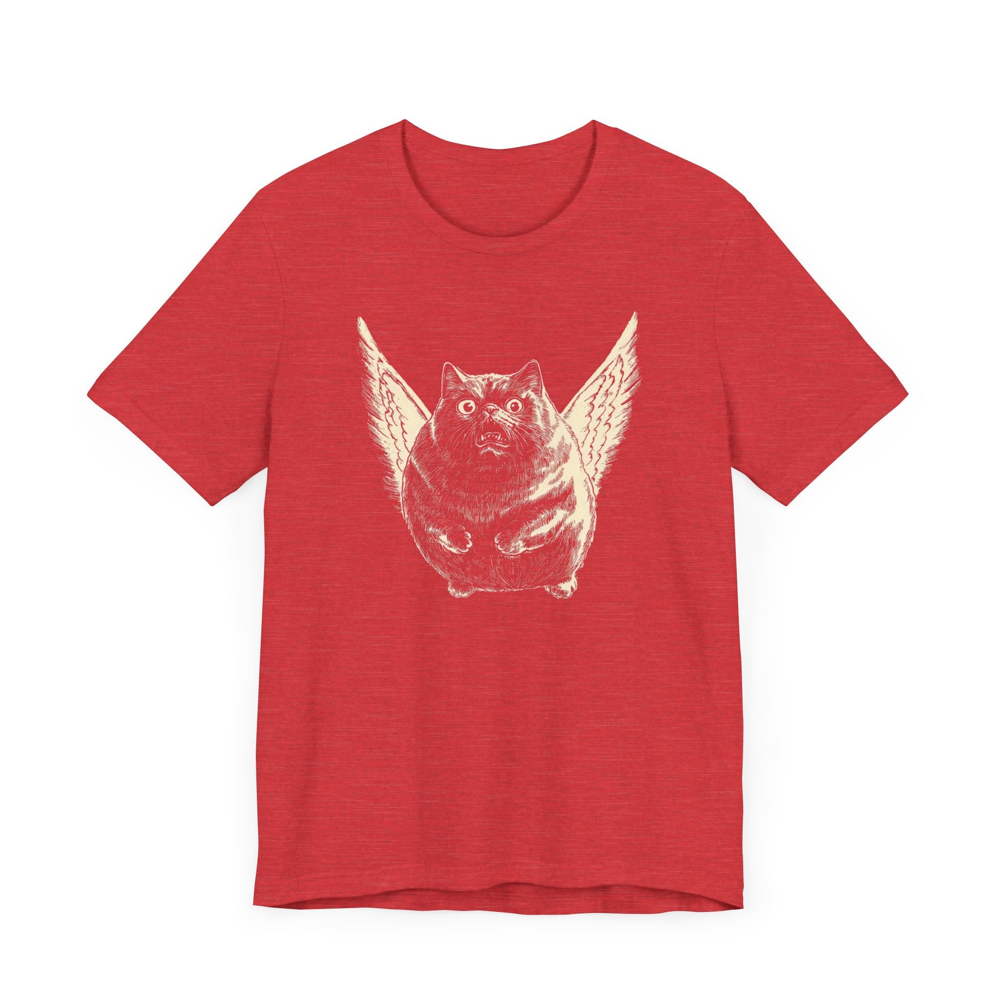 😂🐱 Soar into style with this Flying Chubby Cat T-Shirt! Featuring a hilarious design of a wide-eyed chubby cat with angel wings, this tee is a perfect mix of quirky and cute. It’s a must-have for cat lovers with a sense of humor. Wear it and let your fun side take flight! 🐾✨ Why You’ll Love It: 👕 Ultimate Comfort: Made with 100% Airlume combed and ring-spun cotton, this tee offers a lightweight (4.2 oz/yd² or 142 g/m²) and breathable fabric that’s perfect for both active and leisure wear. 👔 Versatile Style: The retail fit and classic crew neckline make this shirt perfect for casual outings and semi-formal settings alike. Accessorize easily to create your unique look! 👍 Durable Quality: Ribbed knit collars and tapered shoulders ensure a better fit over time, while dual side seams hold the garment’s shape longer, wash after wash. 🌱 Ethically Made: Bella+Canvas products are manufactured in the USA and internationally in a humane, no-sweat-shop, sustainable manner. Proudly part of the Fair Labor Association and Platinum WRAP certified. 🔖 No Irritation: Featuring a tear-away label for added comfort, say goodbye to annoying tags! Fabric Details: 🧵 Solid Colors: 100% Airlume combed and ring-spun cotton 🧵 Ash and Heather Prism: 99% Airlume combed and ring-spun cotton, 1% polyester 🧵 Heather and Solid Blends: 52% cotton, 48% polyester 🧵 Athletic Heather and Black Heather: 90% cotton, 10% polyester Perfect For: 🎁 Gift Giving: An excellent gift for birthdays, holidays, or any special occasion for cat and fashion lovers. 🌳 Everyday Wear: Whether you’re running errands, meeting friends, or just relaxing at home, this shirt is your go-to choice. Embrace your love for bold and unique designs with our Angry Cat Vintage Style T-Shirt. Add it to your collection today! 🛒
