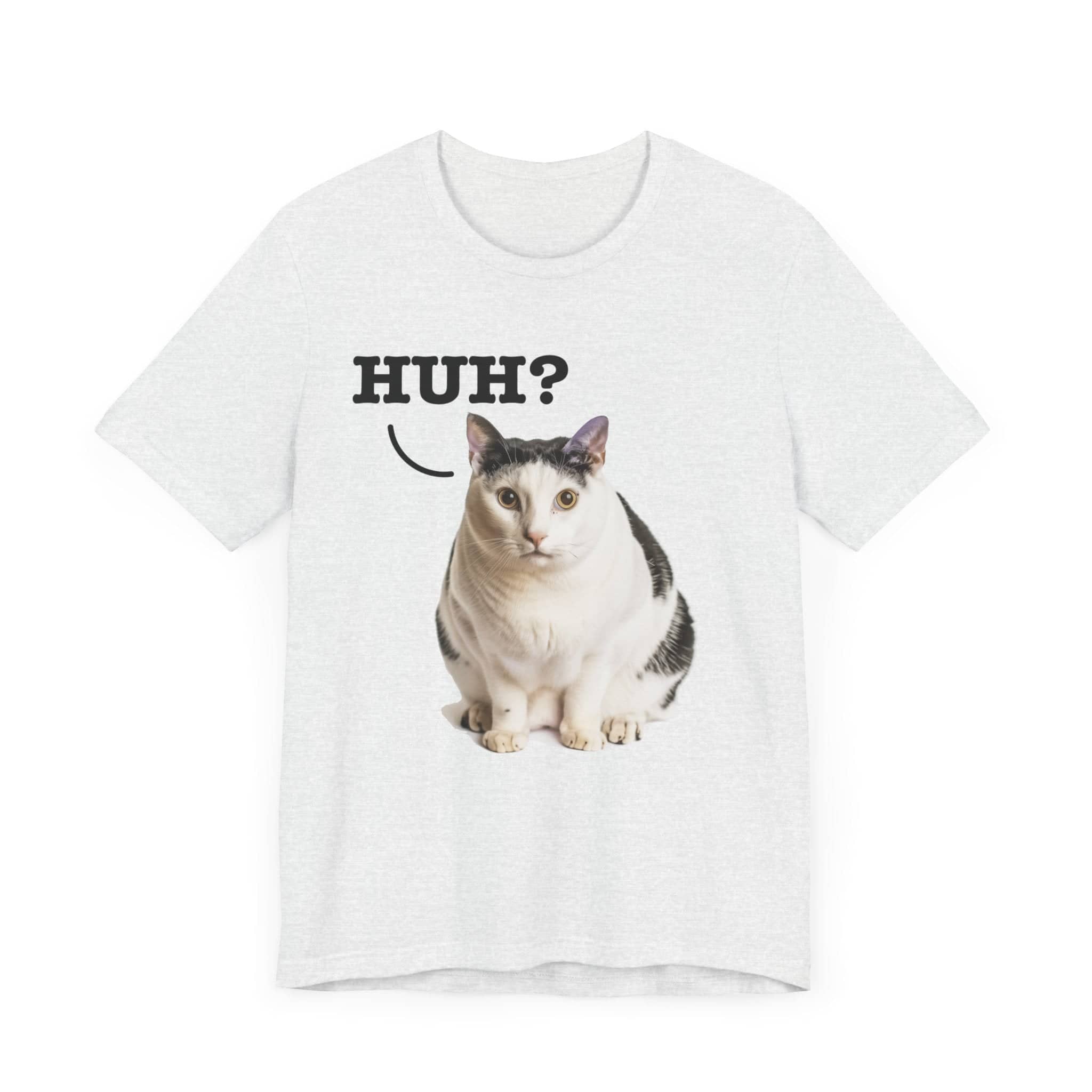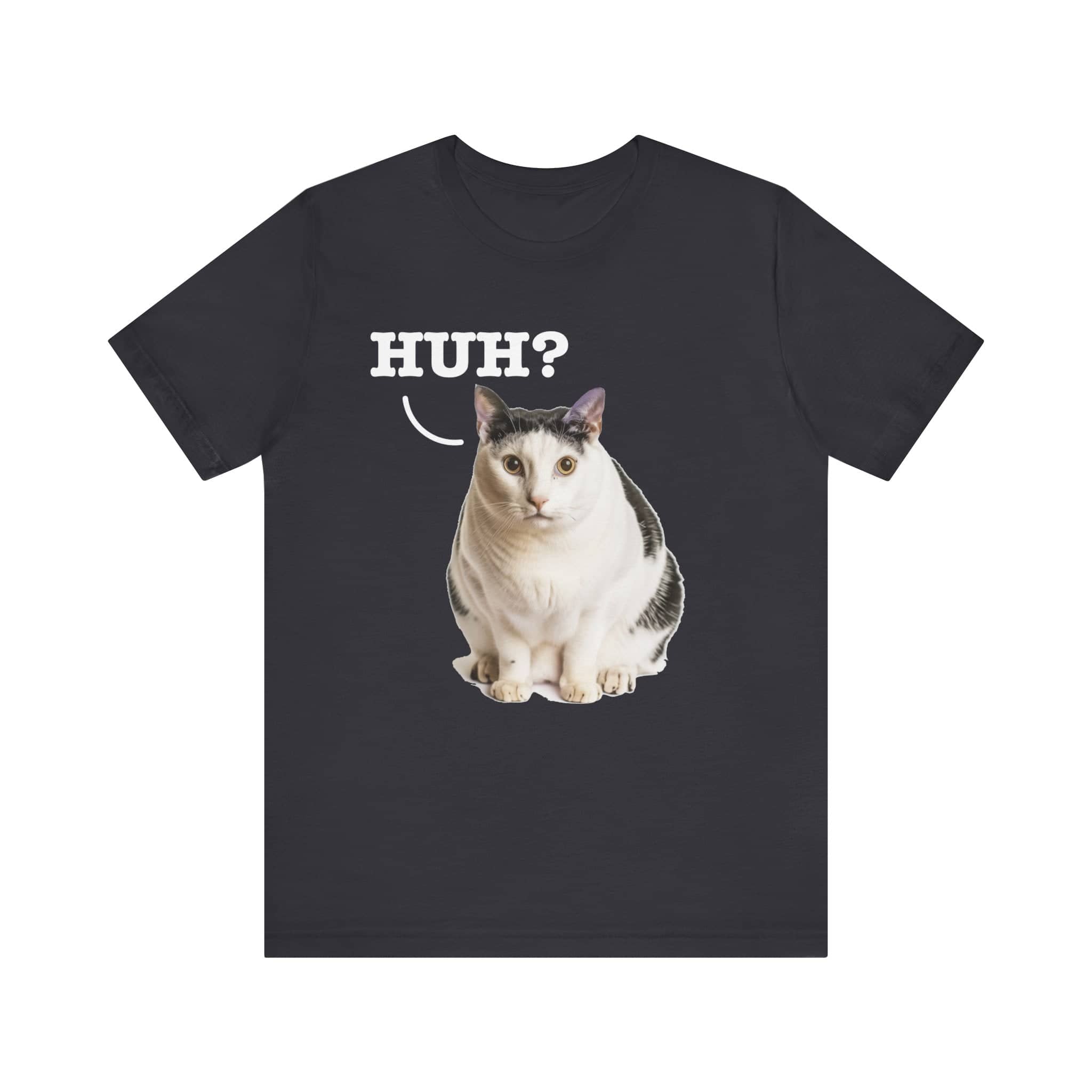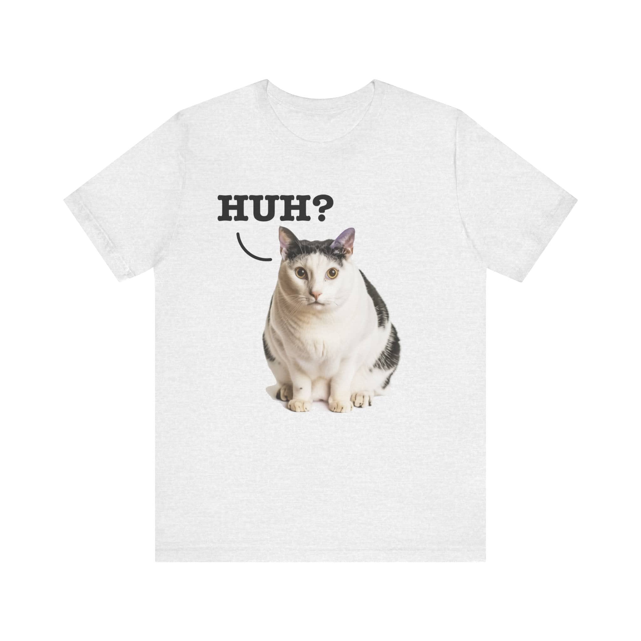 Inject Some Fun into Your Wardrobe with Our Original Art “Huh?” Cat Meme T-Shirt! 😸✨ Who says your fashion can’t be as playful as your personality? Flaunt your love for cats and iconic internet culture with our exclusive “Huh?” Cat Meme T-Shirt. This isn’t just another meme shirt; it’s a piece of original artwork, specially recreated to capture the beloved surprise and whimsy of the famous cat meme without stepping on any toes legally. Why It’s a Must-Have: Original Artwork: Stand out with a design that’s uniquely ours, ensuring you wear a genuine and copyright-respectful version of a viral sensation. Conversation Starter: Guaranteed to turn heads and spark smiles, this tee is perfect for casual outings, meme-themed parties, or just lounging at home. Soft and Comfortable: Crafted for comfort, making it your soon-to-be favorite tee for any occasion. Grab this tee and bring some extra joy into your day—or gift it to a cat-loving friend who appreciates a good laugh and a unique style! This classic unisex jersey short sleeve tee fits like a well-loved favorite. Soft cotton and quality print make users fall in love with it over and over again. These t-shirts have-ribbed knit collars to bolster shaping. The shoulders are tapered for a better fit over time. Dual side seams hold the garment’s shape for longer. .: Made with 100% Airlume combed and ring-spun cotton, a lightweight fabric (4.2 oz/yd² (142 g/m²)) that is easy to layer, breathable. Perfect for active and leisure wear. .: The retail fit that is perfect for casual and semi-formal settings. The crew neckline adds a classic, neat style that’s perfect for accessorizing. .: Bella+Canvas manufactures all its products in the US and internationally in humane, no-sweat-shop, sustainable way and is part of the Fair Labor Association as well as Platinum WRAP certified. .: The tear-away label minimizes skin irritations. .: Fabric blends: Ash and Heather Prism colors – 99% Airlume combed and ring-spun cotton, 1% polyester; Heather and Solid Blend colors – 52% cotton, 48% polyester; Athletic Heather and Black Heather – 90% cotton, 10% polyester.