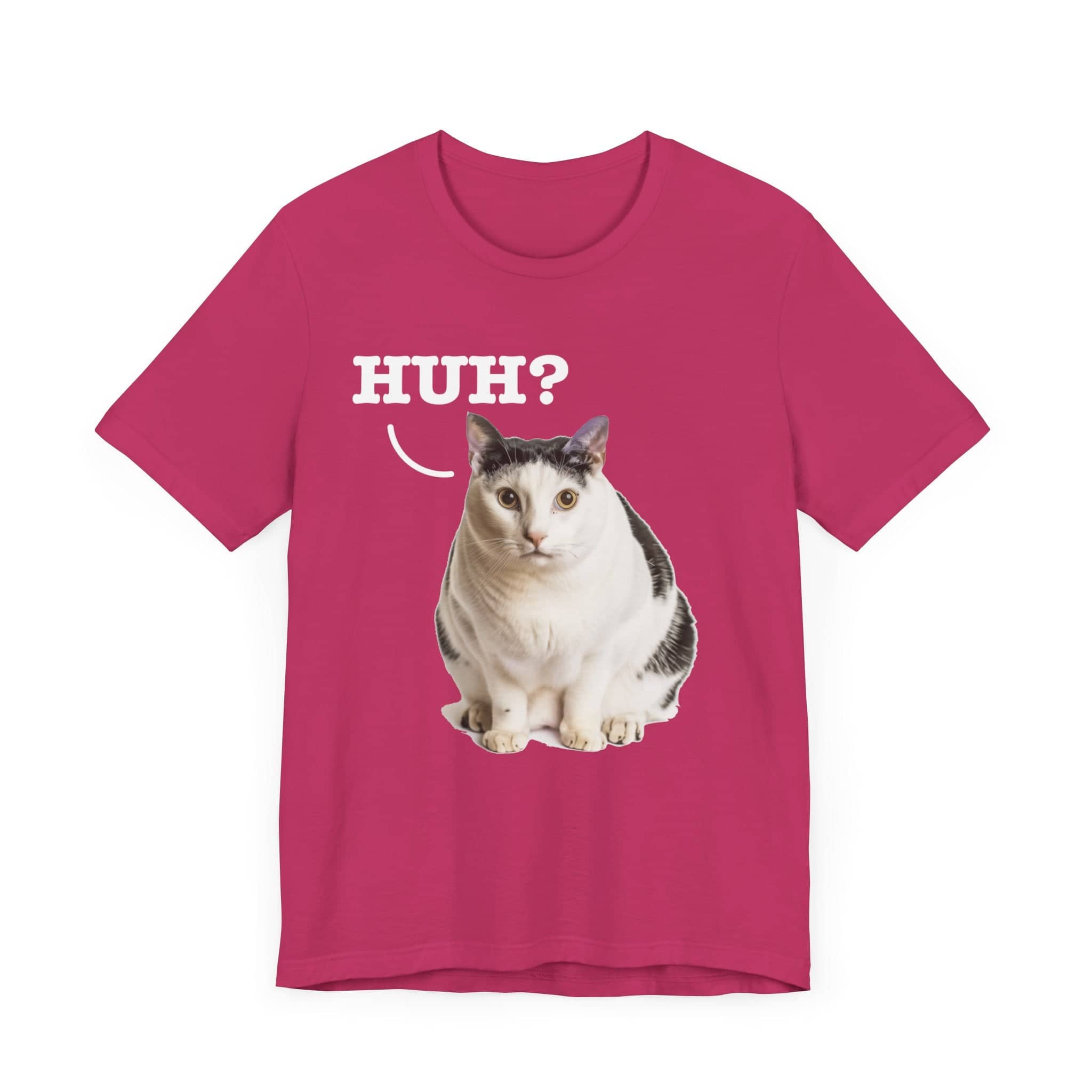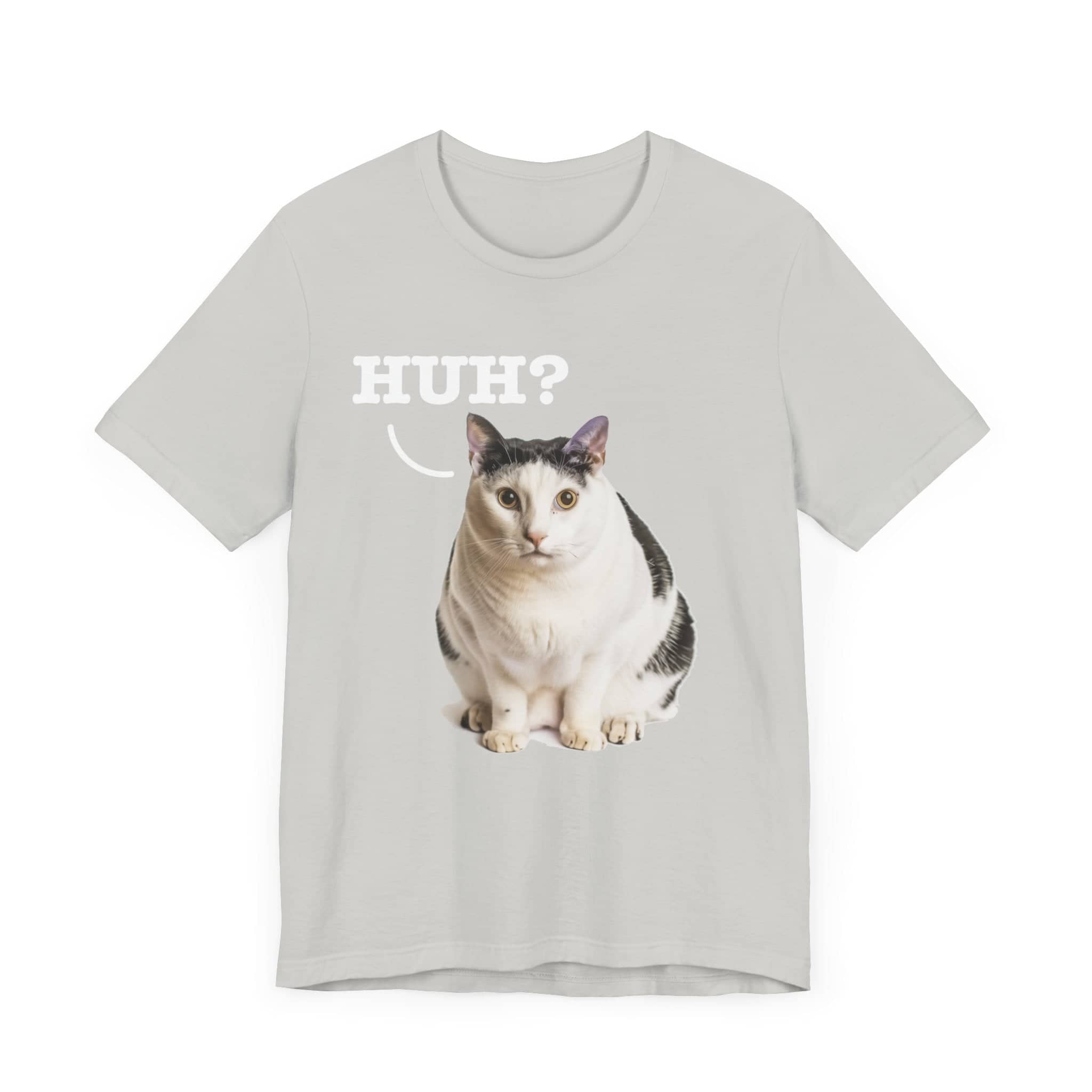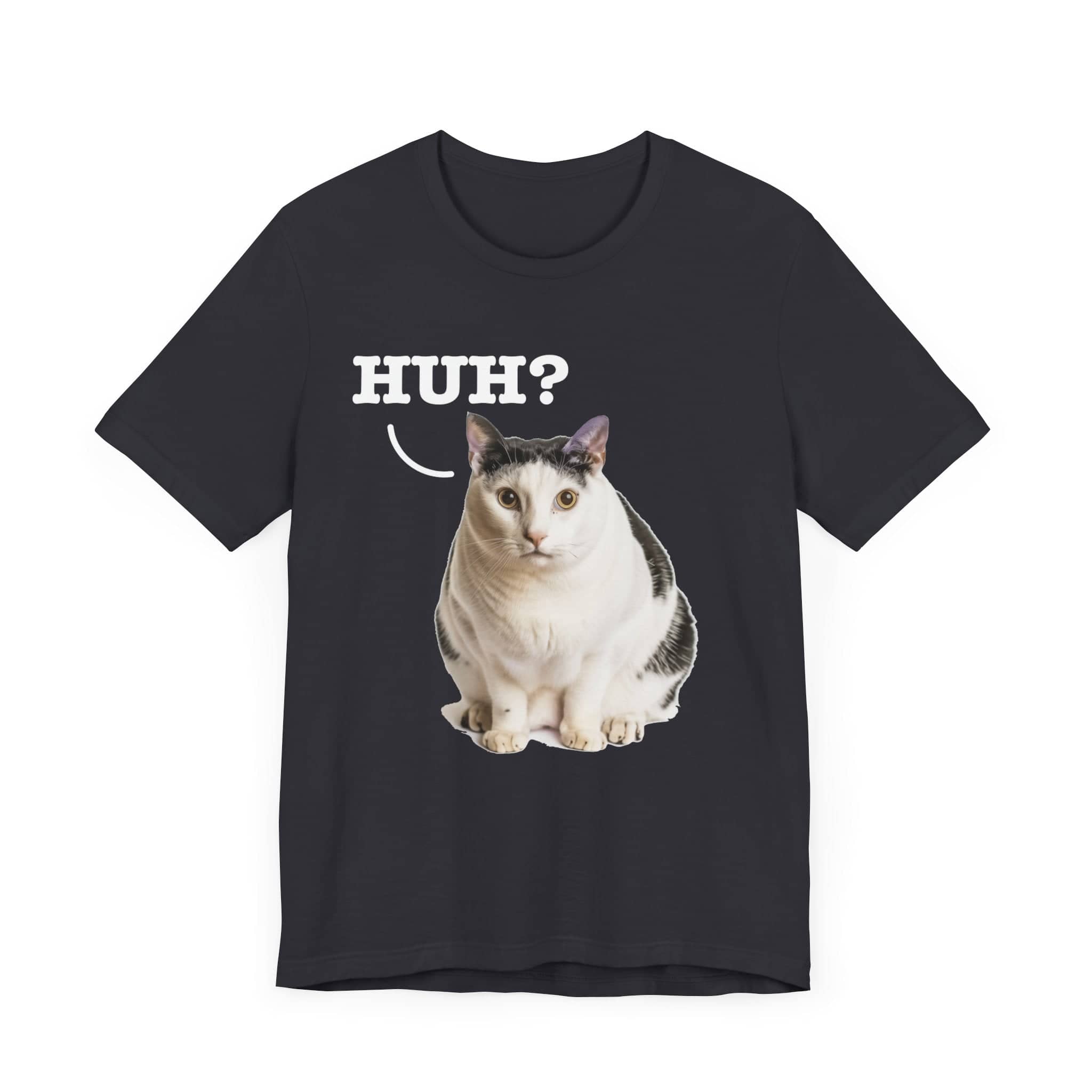 Inject Some Fun into Your Wardrobe with Our Original Art “Huh?” Cat Meme T-Shirt! 😸✨ Who says your fashion can’t be as playful as your personality? Flaunt your love for cats and iconic internet culture with our exclusive “Huh?” Cat Meme T-Shirt. This isn’t just another meme shirt; it’s a piece of original artwork, specially recreated to capture the beloved surprise and whimsy of the famous cat meme without stepping on any toes legally. Why It’s a Must-Have: Original Artwork: Stand out with a design that’s uniquely ours, ensuring you wear a genuine and copyright-respectful version of a viral sensation. Conversation Starter: Guaranteed to turn heads and spark smiles, this tee is perfect for casual outings, meme-themed parties, or just lounging at home. Soft and Comfortable: Crafted for comfort, making it your soon-to-be favorite tee for any occasion. Grab this tee and bring some extra joy into your day—or gift it to a cat-loving friend who appreciates a good laugh and a unique style! This classic unisex jersey short sleeve tee fits like a well-loved favorite. Soft cotton and quality print make users fall in love with it over and over again. These t-shirts have-ribbed knit collars to bolster shaping. The shoulders are tapered for a better fit over time. Dual side seams hold the garment’s shape for longer. .: Made with 100% Airlume combed and ring-spun cotton, a lightweight fabric (4.2 oz/yd² (142 g/m²)) that is easy to layer, breathable. Perfect for active and leisure wear. .: The retail fit that is perfect for casual and semi-formal settings. The crew neckline adds a classic, neat style that’s perfect for accessorizing. .: Bella+Canvas manufactures all its products in the US and internationally in humane, no-sweat-shop, sustainable way and is part of the Fair Labor Association as well as Platinum WRAP certified. .: The tear-away label minimizes skin irritations. .: Fabric blends: Ash and Heather Prism colors – 99% Airlume combed and ring-spun cotton, 1% polyester; Heather and Solid Blend colors – 52% cotton, 48% polyester; Athletic Heather and Black Heather – 90% cotton, 10% polyester.