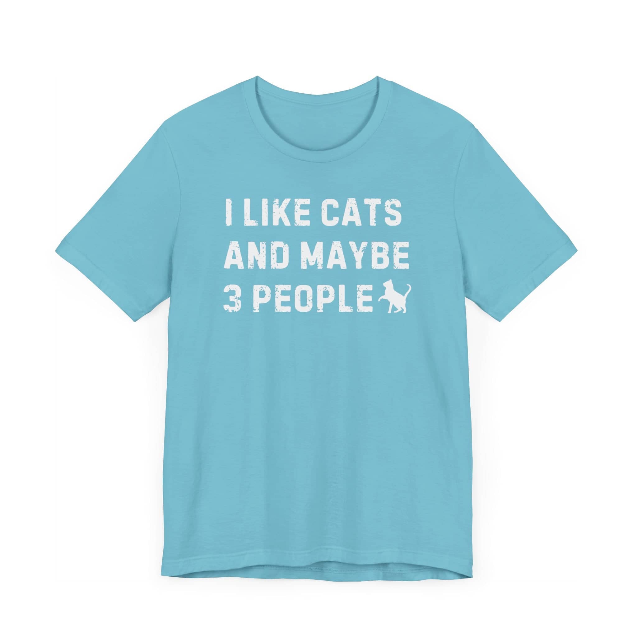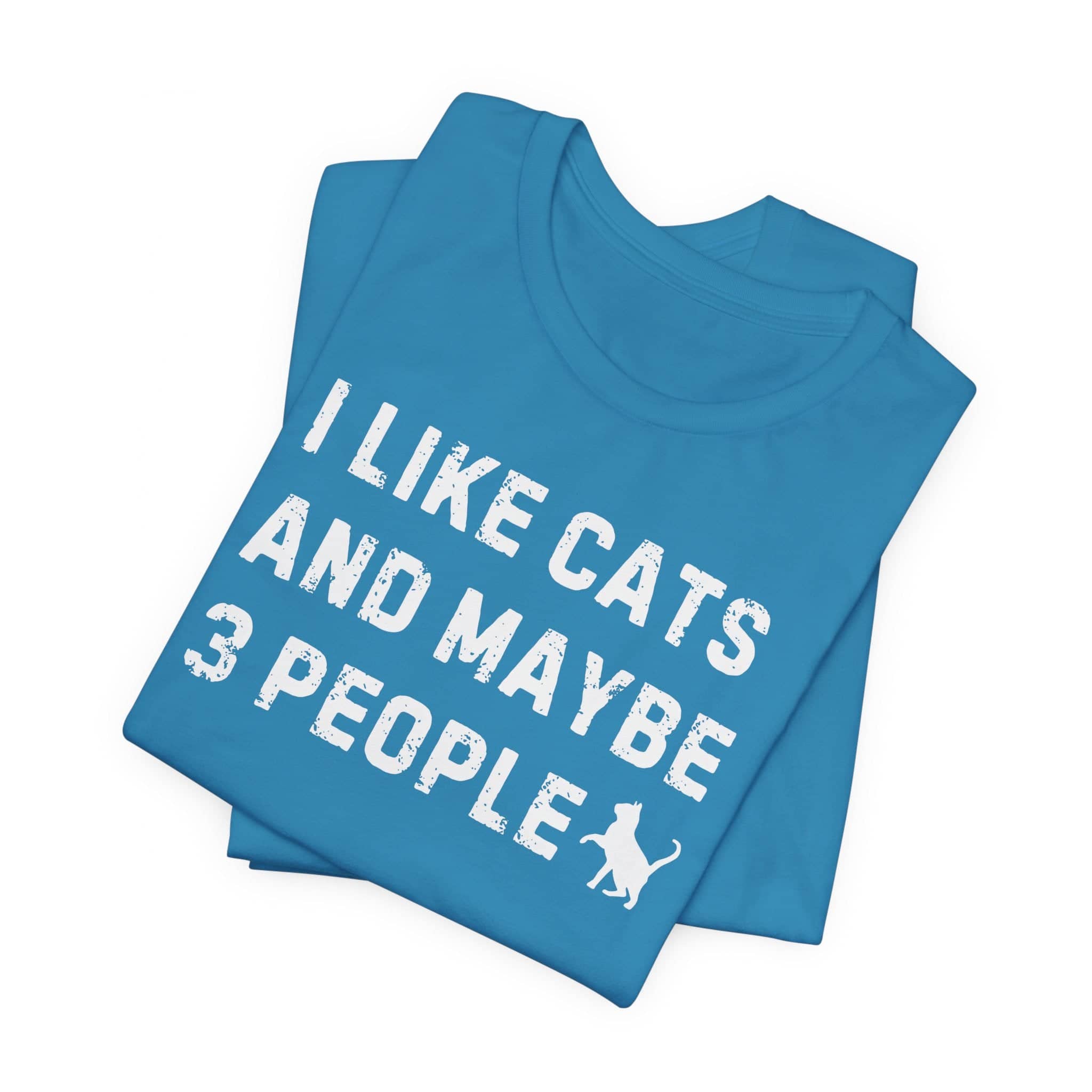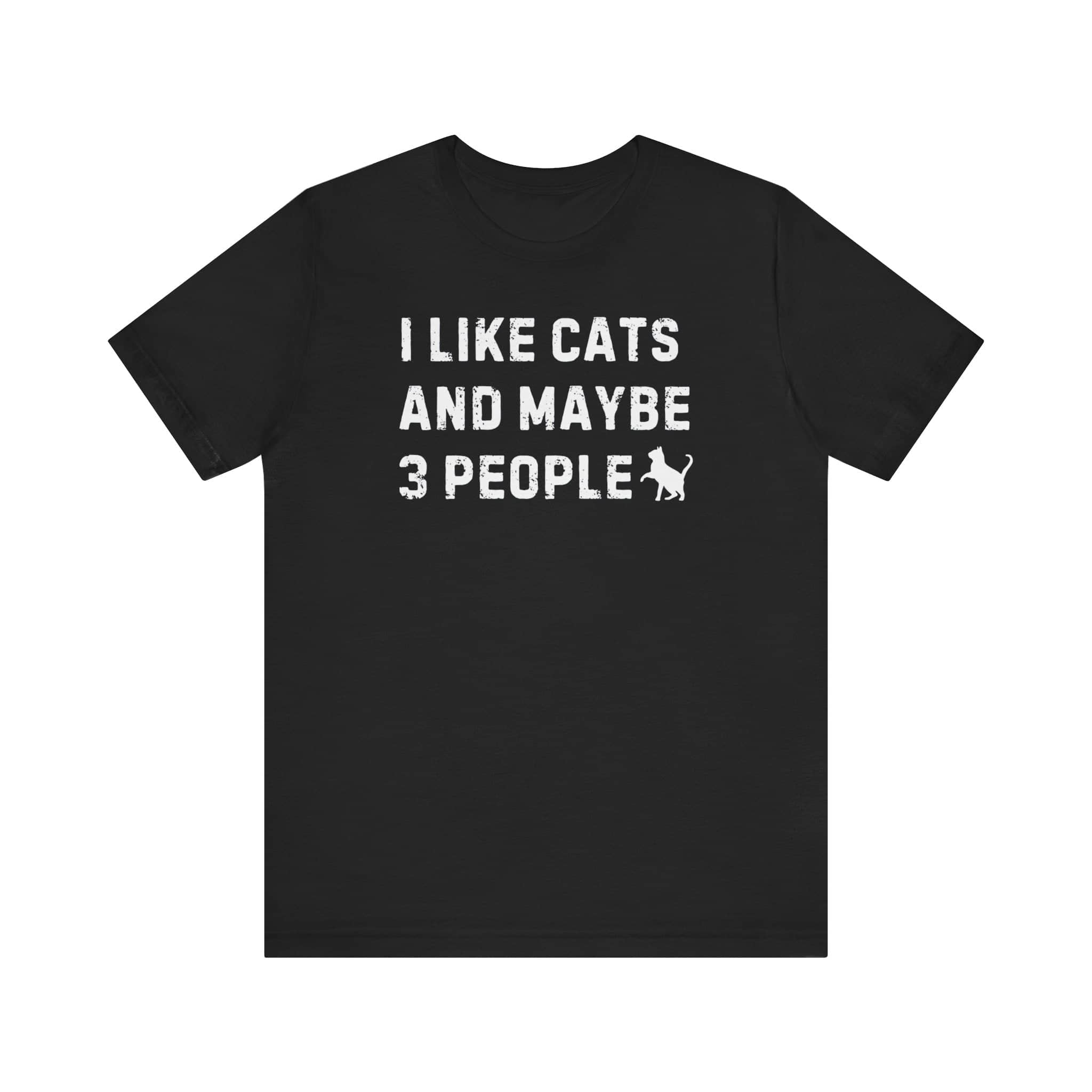 I Like Cats and Maybe 3 People T-Shirt Show off your personality with our “I Like Cats and Maybe 3 People” T-Shirt! 🐱😄 This humorous tee is perfect for cat lovers who also appreciate a good laugh. The bold text and playful cat silhouette design make it a standout piece in any wardrobe. Available in multiple colors, this shirt is made from high-quality, soft fabric, ensuring all-day comfort and durability. Express your love for cats and your selective social circle with this fun and quirky t-shirt! Why You’ll Love It: 👕 Ultimate Comfort: Made with 100% Airlume combed and ring-spun cotton, this tee offers a lightweight (4.2 oz/yd² or 142 g/m²) and breathable fabric that’s perfect for both active and leisure wear. 👔 Versatile Style: The retail fit and classic crew neckline make this shirt perfect for casual outings and semi-formal settings alike. Accessorize easily to create your unique look! 👍 Durable Quality: Ribbed knit collars and tapered shoulders ensure a better fit over time, while dual side seams hold the garment’s shape longer, wash after wash. 🌱 Ethically Made: Bella+Canvas products are manufactured in the USA and internationally in a humane, no-sweat-shop, sustainable manner. Proudly part of the Fair Labor Association and Platinum WRAP certified. 🔖 No Irritation: Featuring a tear-away label for added comfort, say goodbye to annoying tags! Fabric Details: 🧵 Solid Colors: 100% Airlume combed and ring-spun cotton 🧵 Ash and Heather Prism: 99% Airlume combed and ring-spun cotton, 1% polyester 🧵 Heather and Solid Blends: 52% cotton, 48% polyester 🧵 Athletic Heather and Black Heather: 90% cotton, 10% polyester Perfect For: 🎁 Gift Giving: An excellent gift for birthdays, holidays, or any special occasion for cat and fashion lovers. 🌳 Everyday Wear: Whether you’re running errands, meeting friends, or just relaxing at home, this shirt is your go-to choice.