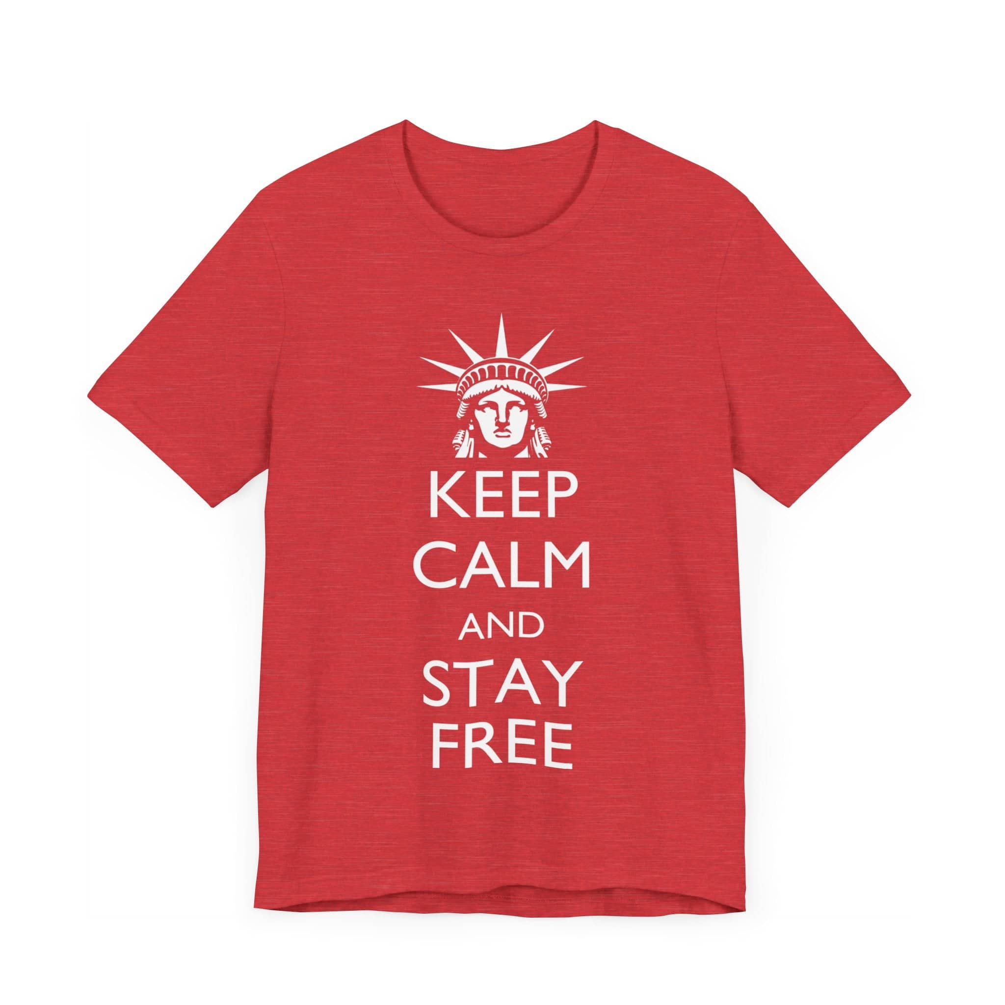 Embrace freedom with this “Keep Calm and Stay Free” T-Shirt! 🗽 Featuring the Statue of Liberty, this shirt promotes a powerful message of calmness and liberty. Crafted from soft, durable fabric, it’s perfect for everyday wear or as a patriotic gift. Ideal for anyone who cherishes freedom and style! 🖤 This classic unisex jersey short sleeve tee fits like a well-loved favorite. Soft cotton and quality print make users fall in love with it over and over again. These t-shirts have-ribbed knit collars to bolster shaping. The shoulders are tapered for a better fit over time. Dual side seams hold the garment’s shape for longer. .: Made with 100% Airlume combed and ring-spun cotton, a lightweight fabric (4.2 oz/yd² (142 g/m²)) that is easy to layer, breathable. Perfect for active and leisure wear. .: The retail fit that is perfect for casual and semi-formal settings. The crew neckline adds a classic, neat style that’s perfect for accessorizing..: Bella+Canvas manufactures all its products in the US and internationally in humane, no-sweat-shop, sustainable way and is part of the Fair Labor Association as well as Platinum WRAP certified. .: The tear-away label minimizes skin irritations..: Fabric blends: Ash and Heather Prism colors – 99% Airlume combed and ring-spun cotton, 1% polyester; Heather and Solid Blend colors – 52% cotton, 48% polyester; Athletic Heather and Black Heather – 90% cotton, 10% polyester.