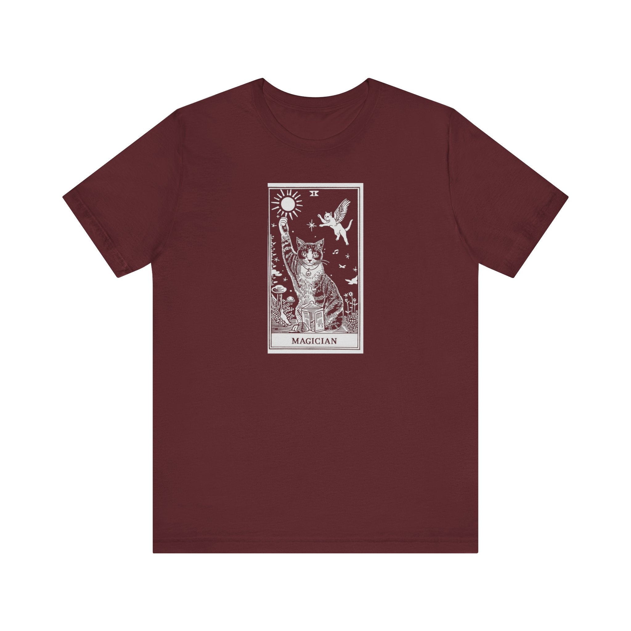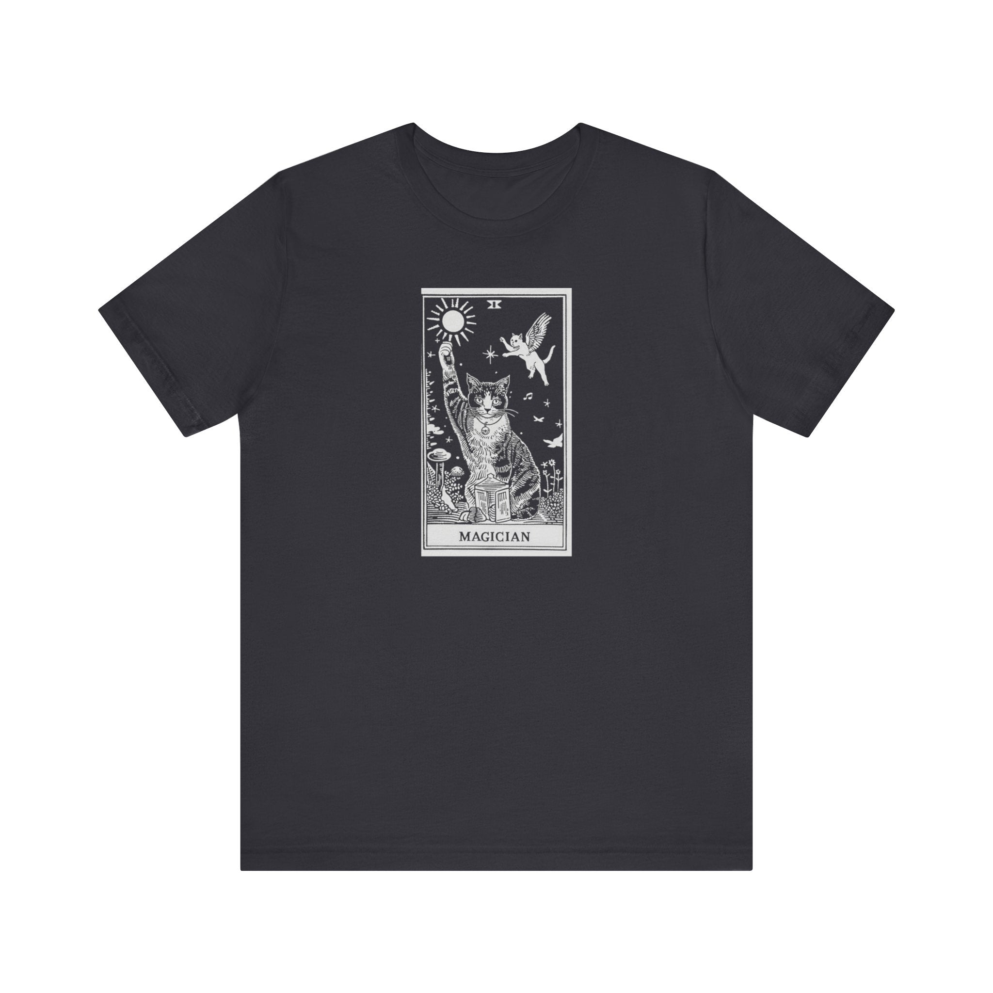 Magician Tarot Cat T-Shirt 🌟😺 Unveil the magic with our Magician Tarot Cat T-Shirt! This unique and mystical cat shirt features a captivating tarot card design, showcasing a powerful cat as the Magician. The Magician card symbolizes creativity, resourcefulness, and transformation—traits perfectly embodied by our enchanting feline friend. Made from high-quality cotton, this shirt offers comfort and durability for everyday wear. Ideal for cat lovers, tarot enthusiasts, and anyone who enjoys mystical and magical designs. Explore the entire Tarot Cat collection at Fluffy Tamer’s Tarot Cat Collection. Order now and bring a touch of magic to your wardrobe! Why You’ll Love It: 👕 Ultimate Comfort: Made with 100% Airlume combed and ring-spun cotton, this tee offers a lightweight (4.2 oz/yd² or 142 g/m²) and breathable fabric that’s perfect for both active and leisure wear. 👔 Versatile Style: The retail fit and classic crew neckline make this shirt perfect for casual outings and semi-formal settings alike. Accessorize easily to create your unique look! 👍 Durable Quality: Ribbed knit collars and tapered shoulders ensure a better fit over time, while dual side seams hold the garment’s shape longer, wash after wash. 🌱 Ethically Made: Bella+Canvas products are manufactured in the USA and internationally in a humane, no-sweat-shop, sustainable manner. Proudly part of the Fair Labor Association and Platinum WRAP certified. 🔖 No Irritation: Featuring a tear-away label for added comfort, say goodbye to annoying tags! Fabric Details: 🧵 Solid Colors: 100% Airlume combed and ring-spun cotton 🧵 Ash and Heather Prism: 99% Airlume combed and ring-spun cotton, 1% polyester 🧵 Heather and Solid Blends: 52% cotton, 48% polyester 🧵 Athletic Heather and Black Heather: 90% cotton, 10% polyester Perfect For: 🎁 Gift Giving: An excellent gift for birthdays, holidays, or any special occasion for cat and fashion lovers. 🌳 Everyday Wear: Whether you’re running errands, meeting friends, or just relaxing at home, this shirt is your go-to choice.