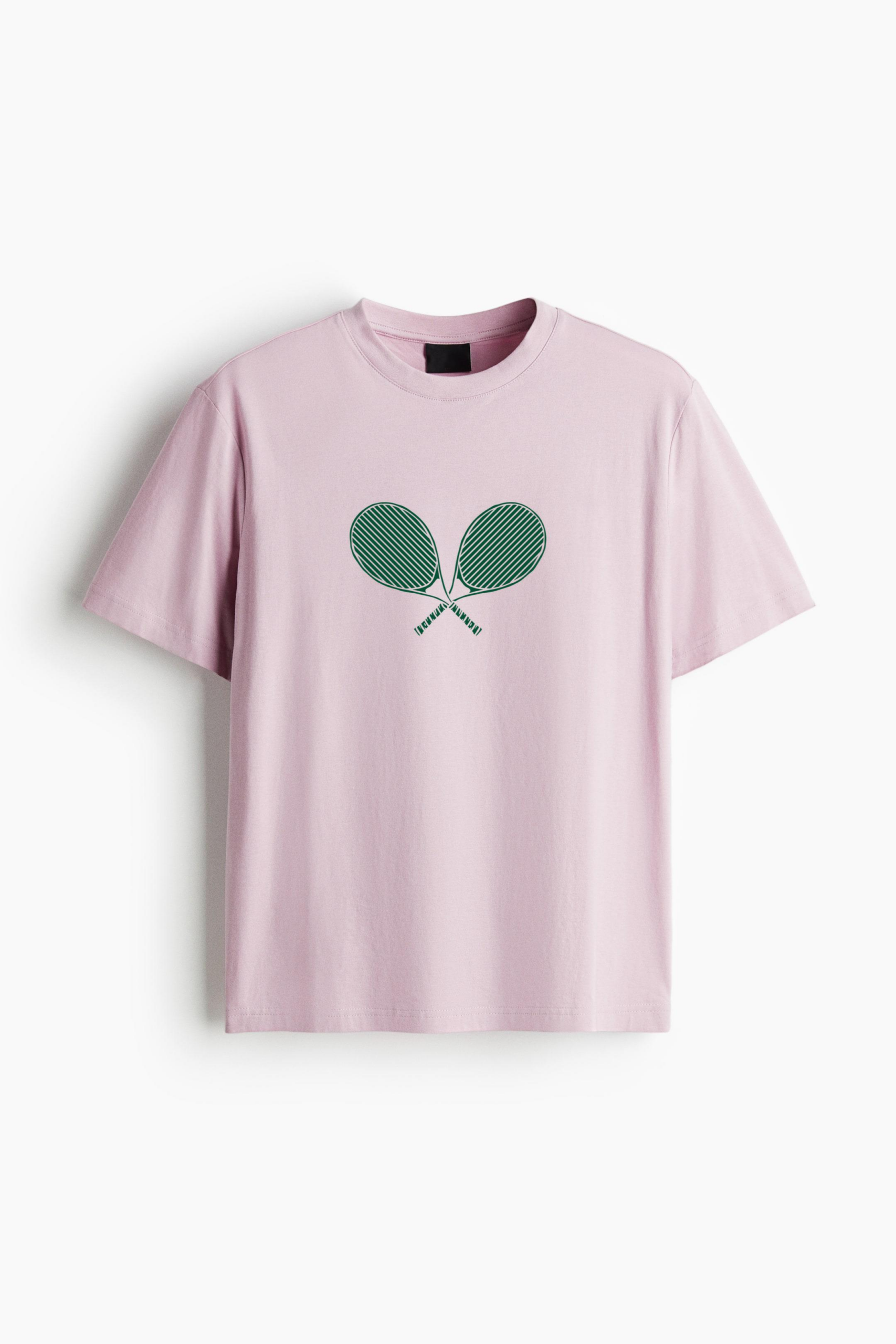 Two Tennis Rackets Cotton T-Shirt Cotton T-Shirt – Straight-Cut Soft Cotton Jersey Tee with Ribbed Crew Neck and Dropped Shoulders