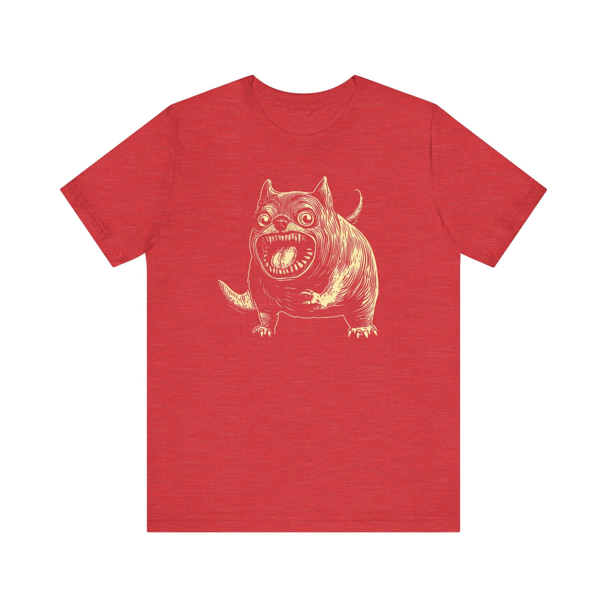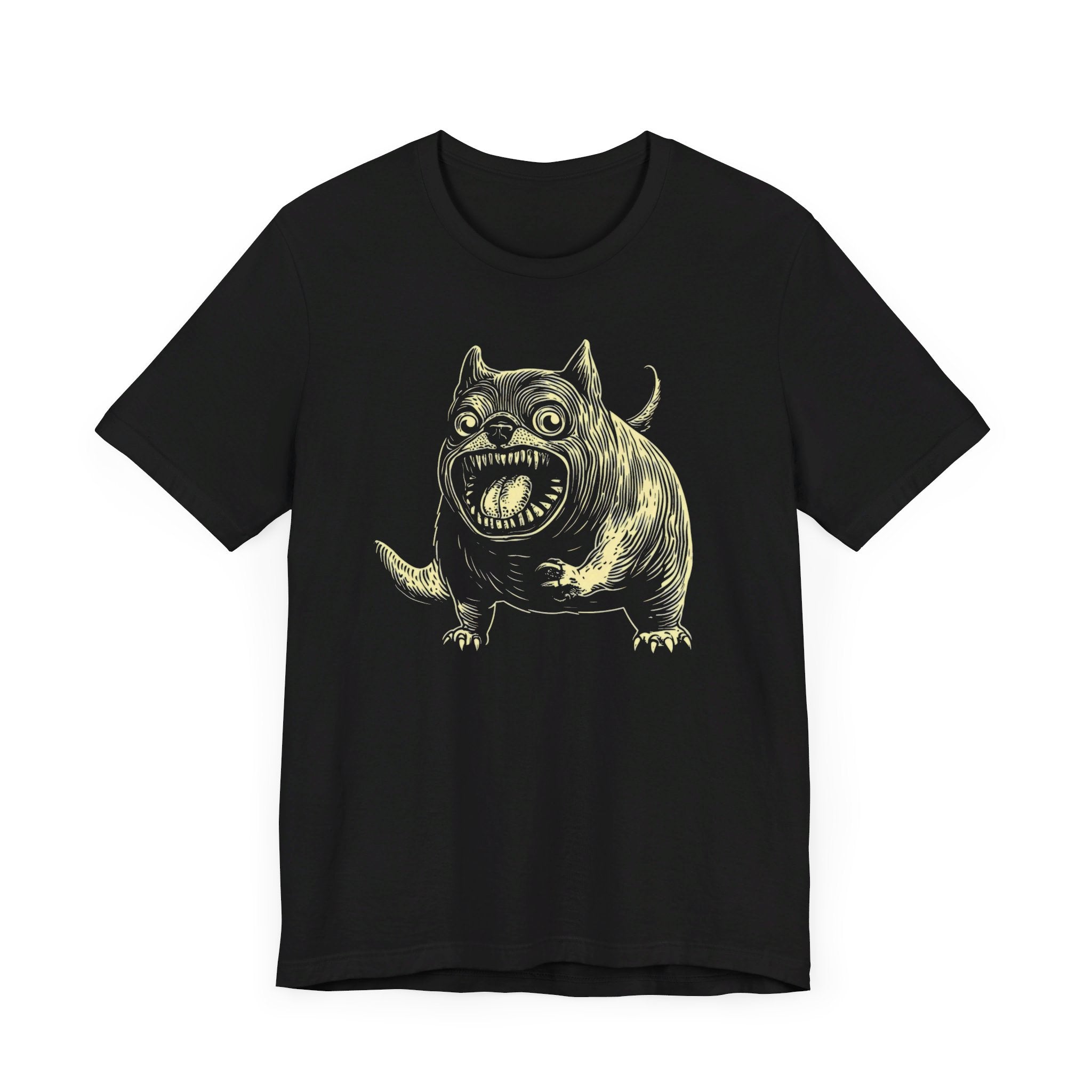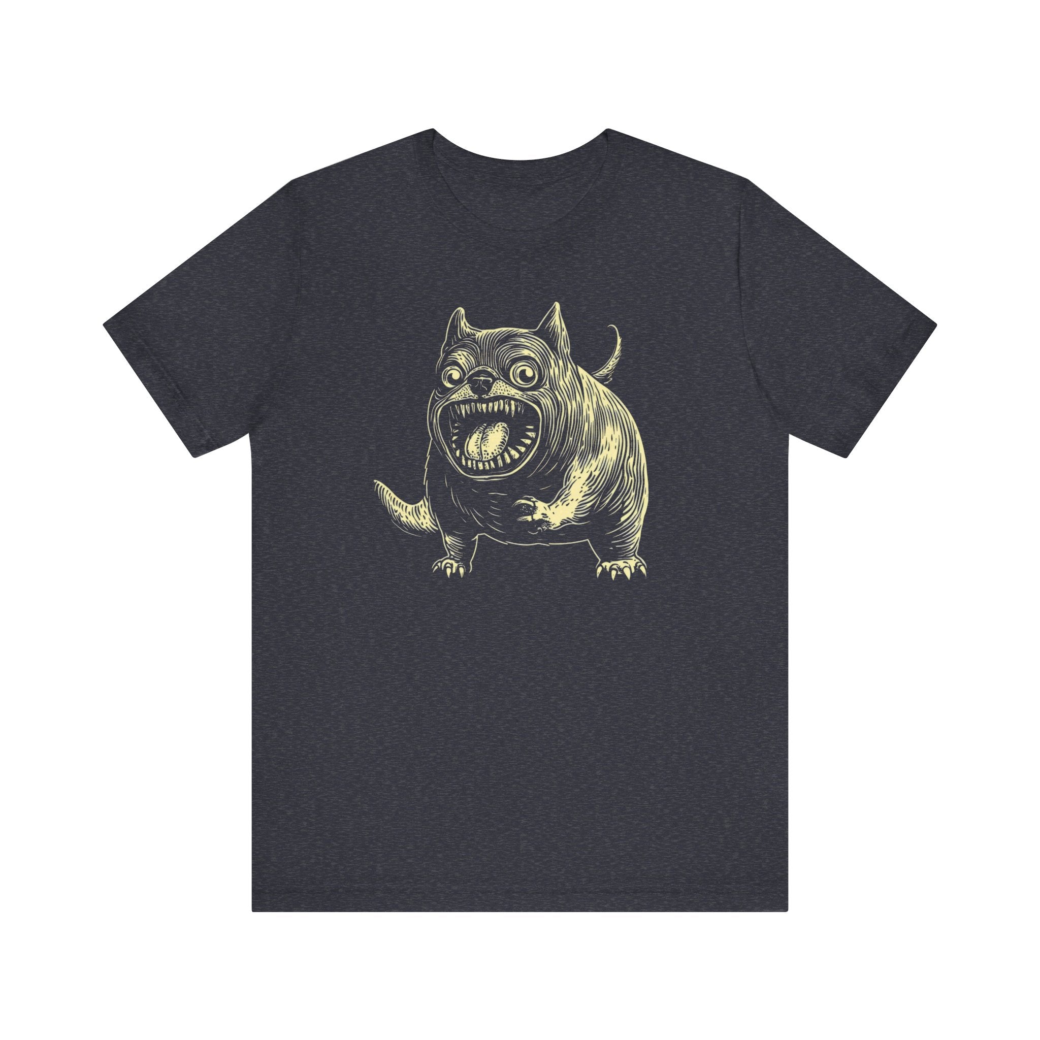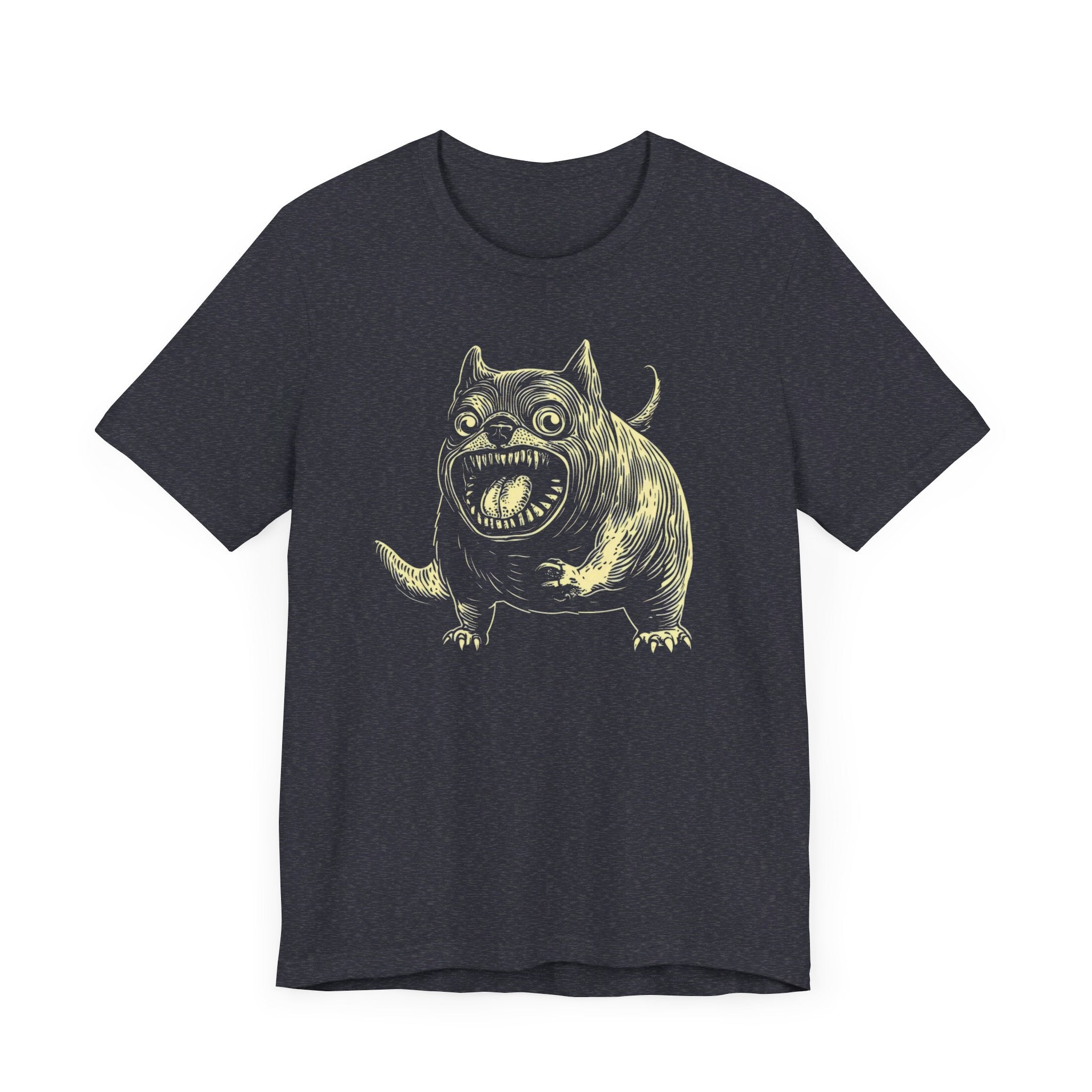 Unleash your quirky side with our Whimsical Monster Dog T-Shirt! 🐶👹 Featuring a chunky, wide-eyed dog with a wild expression, this unique design is perfect for those who love a touch of the unusual. Made from ultra-soft cotton, this tee offers both comfort and a statement look. Whether you’re a dog lover or enjoy fun, out-of-the-box designs, this shirt is sure to stand out. Embrace the whimsical charm of this monstrous pup today! Why You’ll Love It: 👕 Ultimate Comfort: Made with 100% Airlume combed and ring-spun cotton, this tee offers a lightweight (4.2 oz/yd² or 142 g/m²) and breathable fabric that’s perfect for both active and leisure wear. 👔 Versatile Style: The retail fit and classic crew neckline make this shirt perfect for casual outings and semi-formal settings alike. Accessorize easily to create your unique look! 👍 Durable Quality: Ribbed knit collars and tapered shoulders ensure a better fit over time, while dual side seams hold the garment’s shape longer, wash after wash. 🌱 Ethically Made: Bella+Canvas products are manufactured in the USA and internationally in a humane, no-sweat-shop, sustainable manner. Proudly part of the Fair Labor Association and Platinum WRAP certified. 🔖 No Irritation: Featuring a tear-away label for added comfort, say goodbye to annoying tags! Fabric Details: 🧵 Solid Colors: 100% Airlume combed and ring-spun cotton 🧵 Ash and Heather Prism: 99% Airlume combed and ring-spun cotton, 1% polyester 🧵 Heather and Solid Blends: 52% cotton, 48% polyester 🧵 Athletic Heather and Black Heather: 90% cotton, 10% polyester Perfect For: 🎁 Gift Giving: An excellent gift for birthdays, holidays, or any special occasion for cat and fashion lovers. 🌳 Everyday Wear: Whether you’re running errands, meeting friends, or just relaxing at home, this shirt is your go-to choice.
