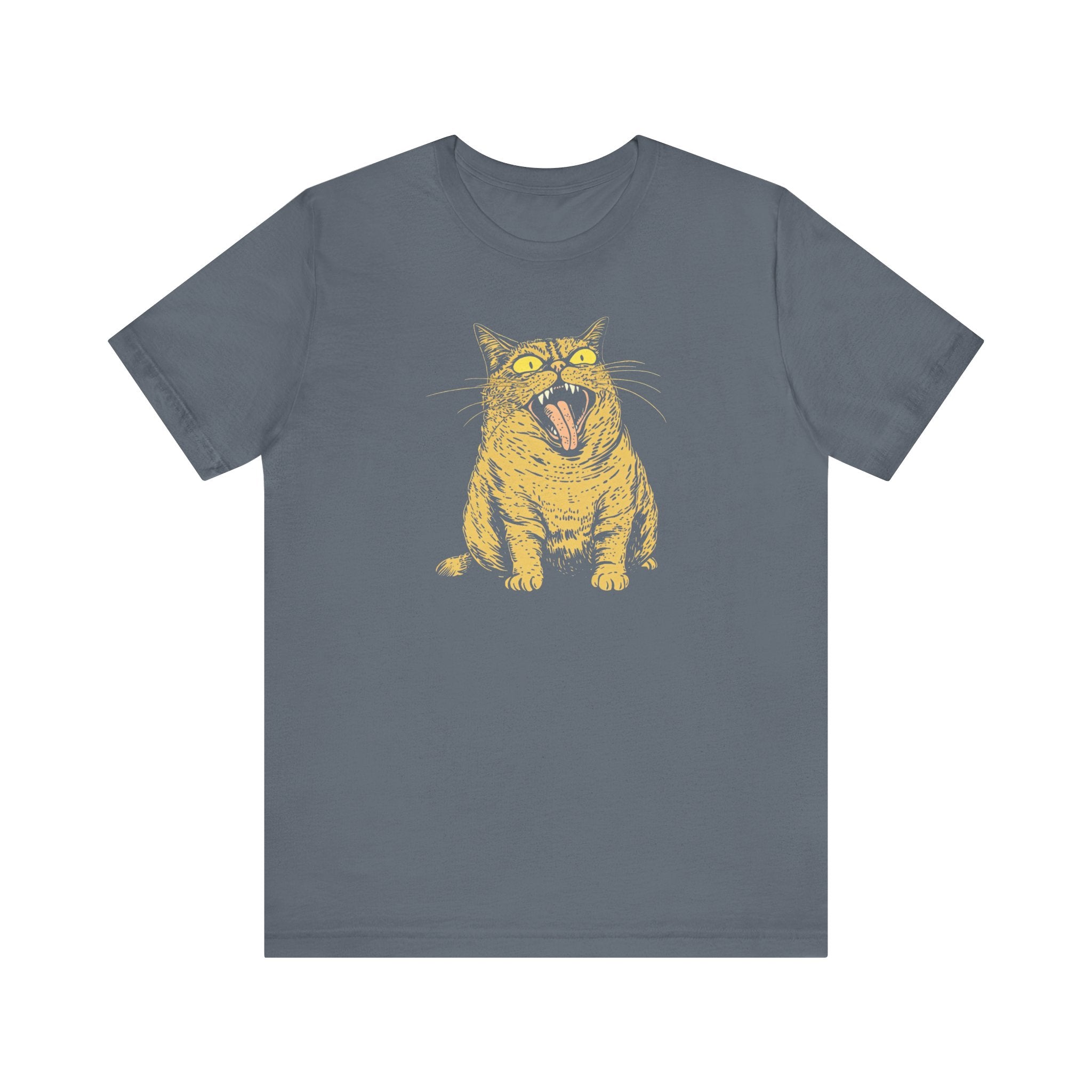 Yowling Chonky Cat Tongue Out T-Shirt Funny Cat Lover Tee Bring on the laughs with our Yowling Chonky Cat Tongue Out T-Shirt! 😸 This playful design captures a chonky cat mid-yowl with its tongue out, adding a dash of humor to your wardrobe. Made from ultra-soft cotton, this tee is not only hilarious but also incredibly comfortable. Perfect for cat lovers who enjoy a fun and unique style. Wear it out and watch as heads turn and smiles appear! 😻🐾 Why You’ll Love It: 👕 Ultimate Comfort: Made with 100% Airlume combed and ring-spun cotton, this tee offers a lightweight (4.2 oz/yd² or 142 g/m²) and breathable fabric that’s perfect for both active and leisure wear. 👔 Versatile Style: The retail fit and classic crew neckline make this shirt perfect for casual outings and semi-formal settings alike. Accessorize easily to create your unique look! 👍 Durable Quality: Ribbed knit collars and tapered shoulders ensure a better fit over time, while dual side seams hold the garment’s shape longer, wash after wash. 🌱 Ethically Made: Bella+Canvas products are manufactured in the USA and internationally in a humane, no-sweat-shop, sustainable manner. Proudly part of the Fair Labor Association and Platinum WRAP certified. 🔖 No Irritation: Featuring a tear-away label for added comfort, say goodbye to annoying tags! Fabric Details: 🧵 Solid Colors: 100% Airlume combed and ring-spun cotton 🧵 Ash and Heather Prism: 99% Airlume combed and ring-spun cotton, 1% polyester 🧵 Heather and Solid Blends: 52% cotton, 48% polyester 🧵 Athletic Heather and Black Heather: 90% cotton, 10% polyester Perfect For: 🎁 Gift Giving: An excellent gift for birthdays, holidays, or any special occasion for cat and fashion lovers. 🌳 Everyday Wear: Whether you’re running errands, meeting friends, or just relaxing at home, this shirt is your go-to choice.